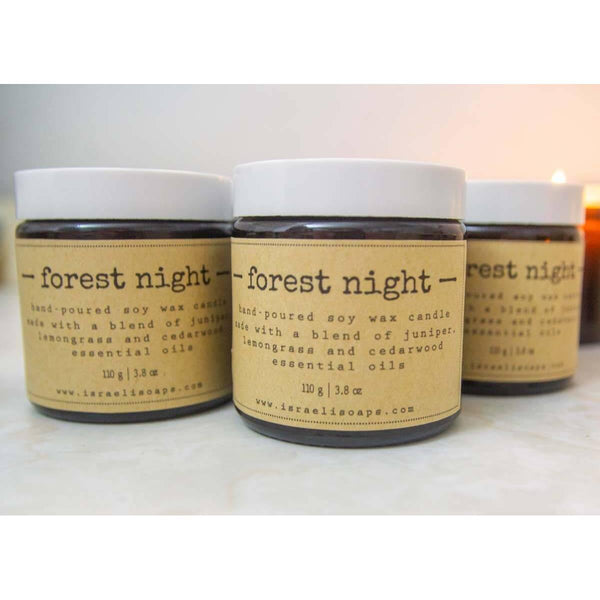 A combination of essential oils of cedar, lemongrass, and juniper create a moist and delicate woody scent of the forest after the rain, such that you can hear the drops dripping even after the rain is over and when you breathe you can see the breathing fumes. The candle comes in a dark glass jar with a lid. The candle weighs about 100 grams, and it keeps burning for about 15 hours.